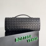 This is a replica BOTTEGA VENETA Andiamo Clutch Bag in Black. This intrecciato leather top handle clutch comes with metallic knot closure, including s,Size: Clutch,Dimensions: ,Signature knot closure,Signature intrecciato woven leather detailing