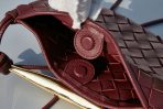 This is a replica BOTTEGA VENETA Sardine Intrecciato Leather Baby Bag in Barolo. This ‘Sardine’ shoulder bag is braided from strips of supple calf leather and hangs from a sculptural gold-tone top handle.,