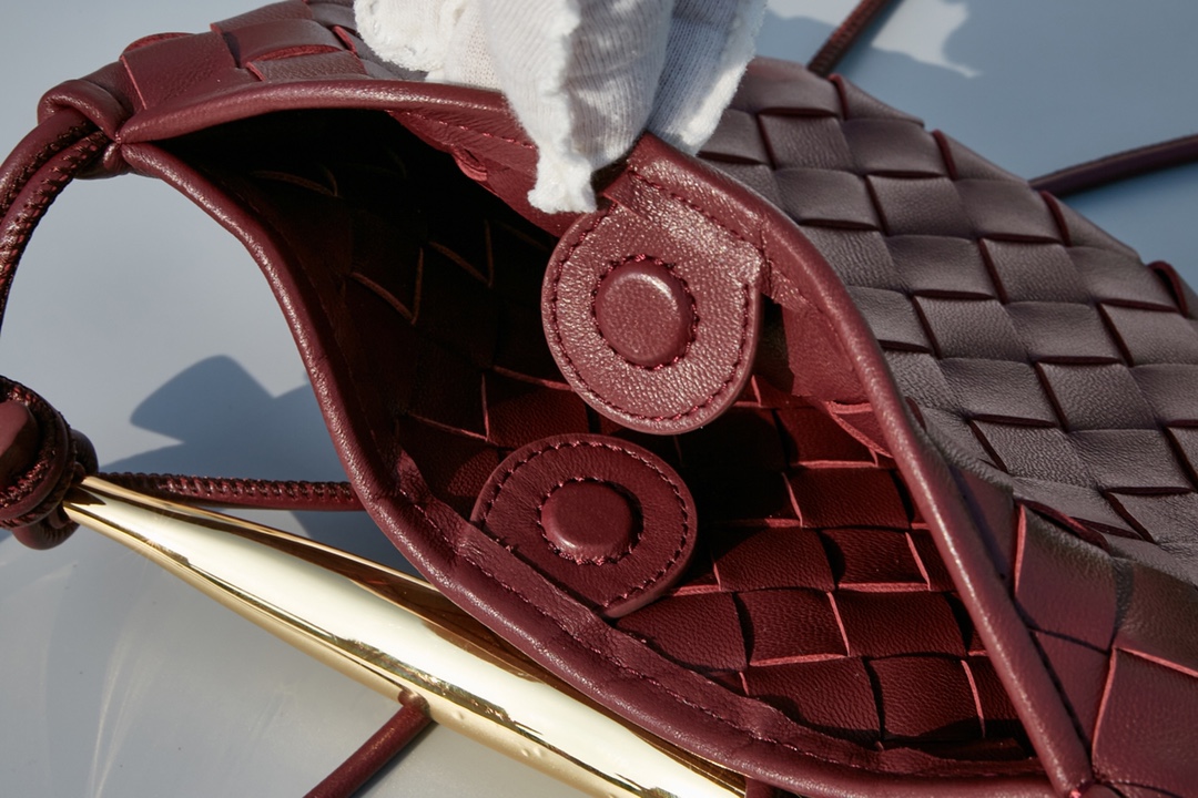 ,Size: Baby,Sculptural metallic top handle, 2″ ,Dimensions: 8″W x 1″D x 4.75″H,Magnetic closure,Signature intrecciato woven leather detailing