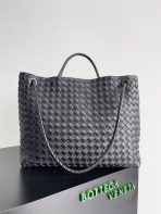 This is a replica BOTTEGA VENETA Large Andiamo in Black. This intrecciato leather top handle bag comes with sliding cross-body strap. ,Lining: Lambskin bonded Intrecciato,