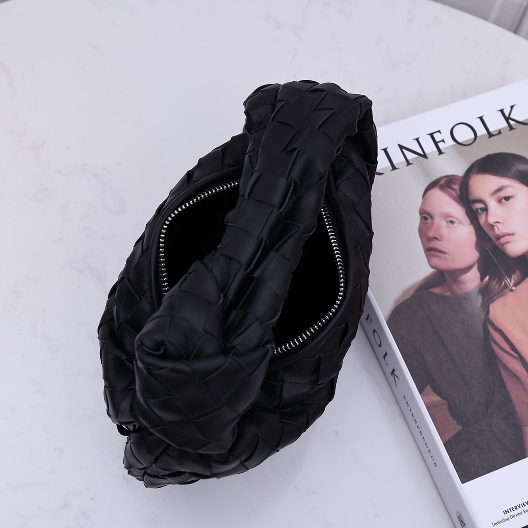 This is a replica BOTTEGA VENETA Mini Jodie in Black. This Top handle bag comes with rounded shape and signature knot in supple Intrecciato leather.,Size: Mini,Dimensions: ,Handle drop: 3.9” in,Single compartment,Zipper closure,Signature intrecciato woven leather detailing