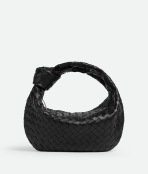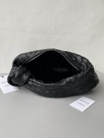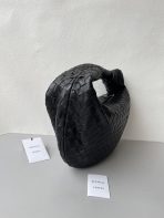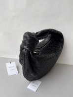 This is a replica BOTTEGA VENETA Small Jodie in Black. This Top handle bag comes with rounded shape and signature knot in supple Intrecciato leather.,Size: Small,Dimensions: ,Handle drop: 7.1” in,Single compartment,Zipper closure,Signature intrecciato woven leather detailing