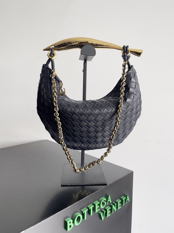 This is a replica BOTTEGA VENETA Small Jodie in Black. This Top handle bag comes with rounded shape and signature knot in supple Intrecciato leather.,Size: Small,Dimensions: ,Handle drop: 7.1” in,Single compartment,Zipper closure,Signature intrecciato woven leather detailing
