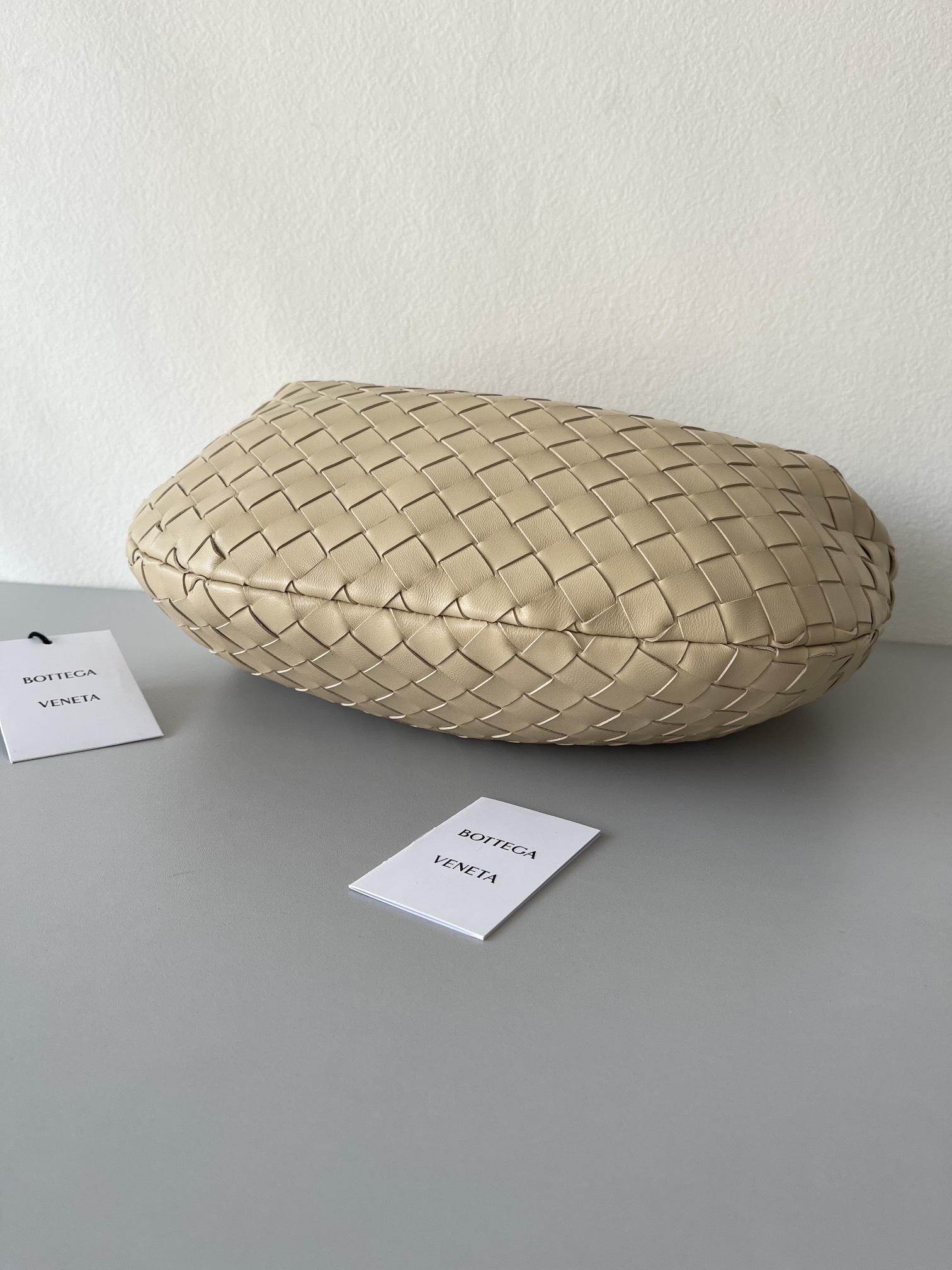 This is a replica BOTTEGA VENETA Small Jodie in Porridge. This Top handle bag comes with rounded shape and signature knot in supple Intrecciato leather.,Size: Small,Dimensions: ,Handle drop: 7.1” in,Single compartment,Zipper closure,Signature intrecciato woven leather detailing