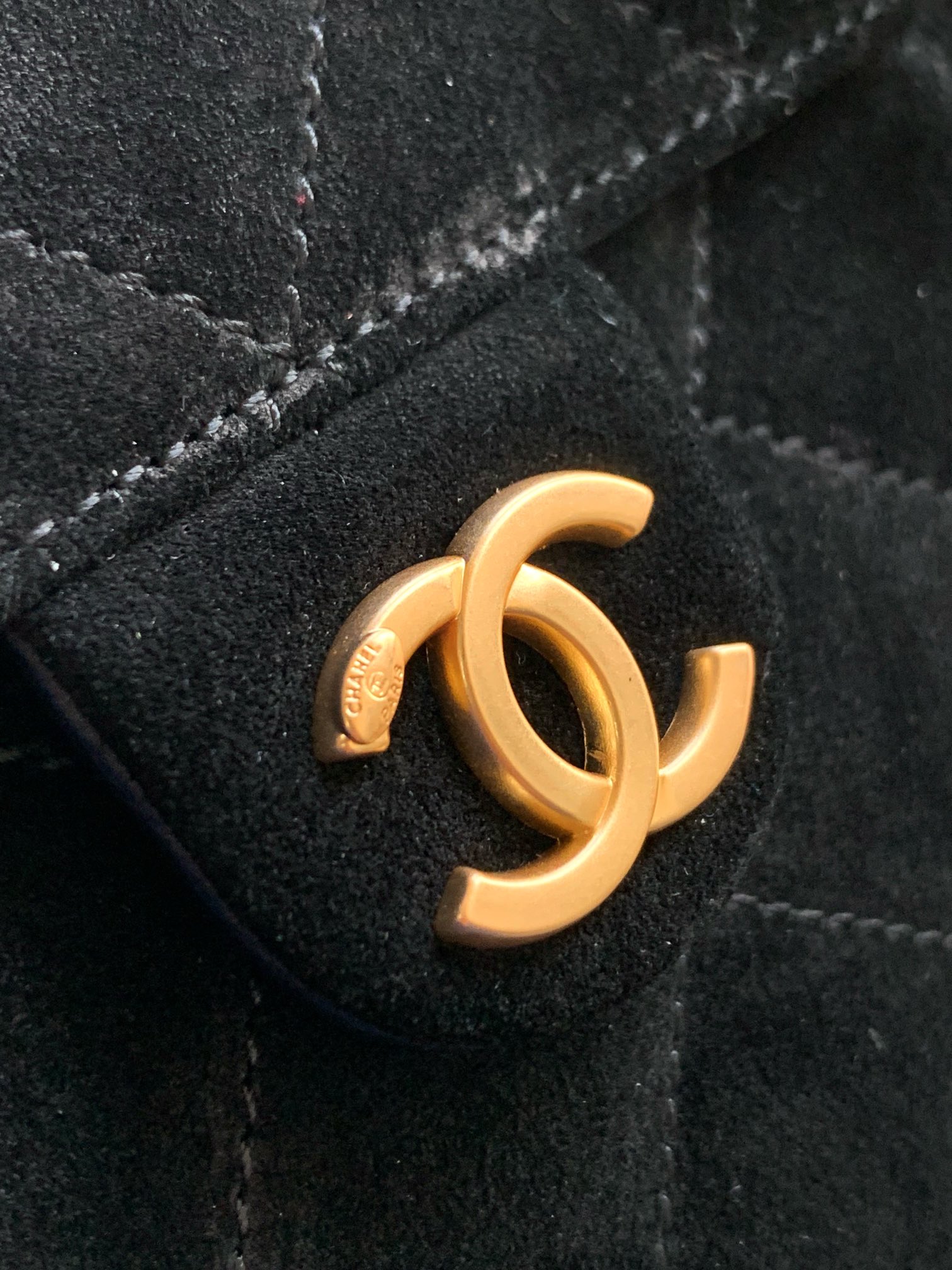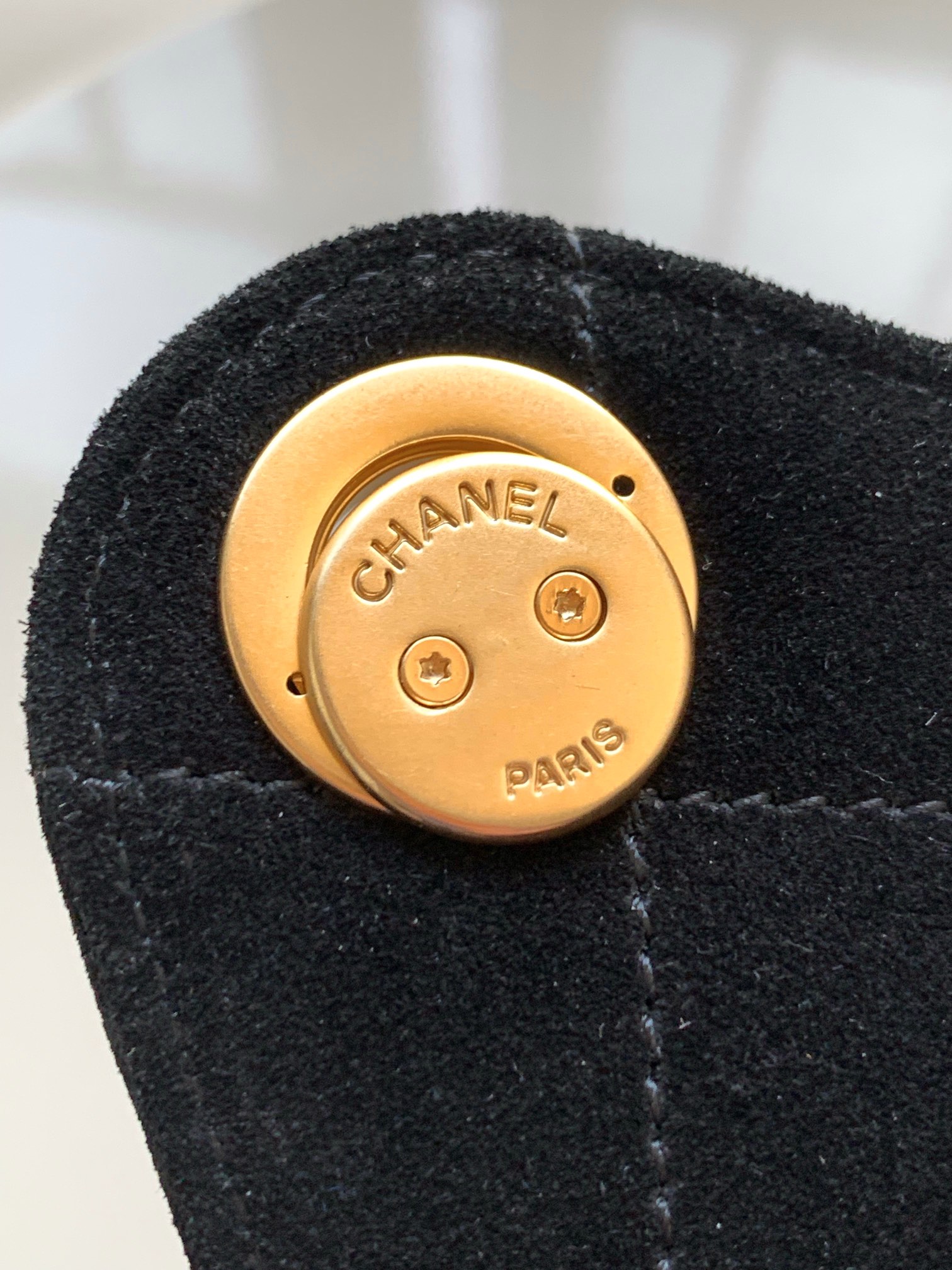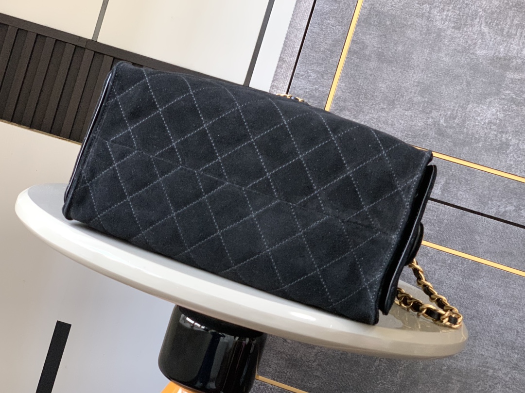 This is a replica CHANEL 25 Small Handbag.  Material: Suede Calfskin & Gold-Tone Metal Dimensions:  Reference: