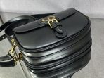 This is a replica CHRISTIAN DIOR Saddle Bag with Strap in black. This bag is finely crafted of shiny box black leather. The bag features a rear pocket, a magnetic clasp and polished gold hardware. The flap opens to a black fabric interior with a patch pocket.,