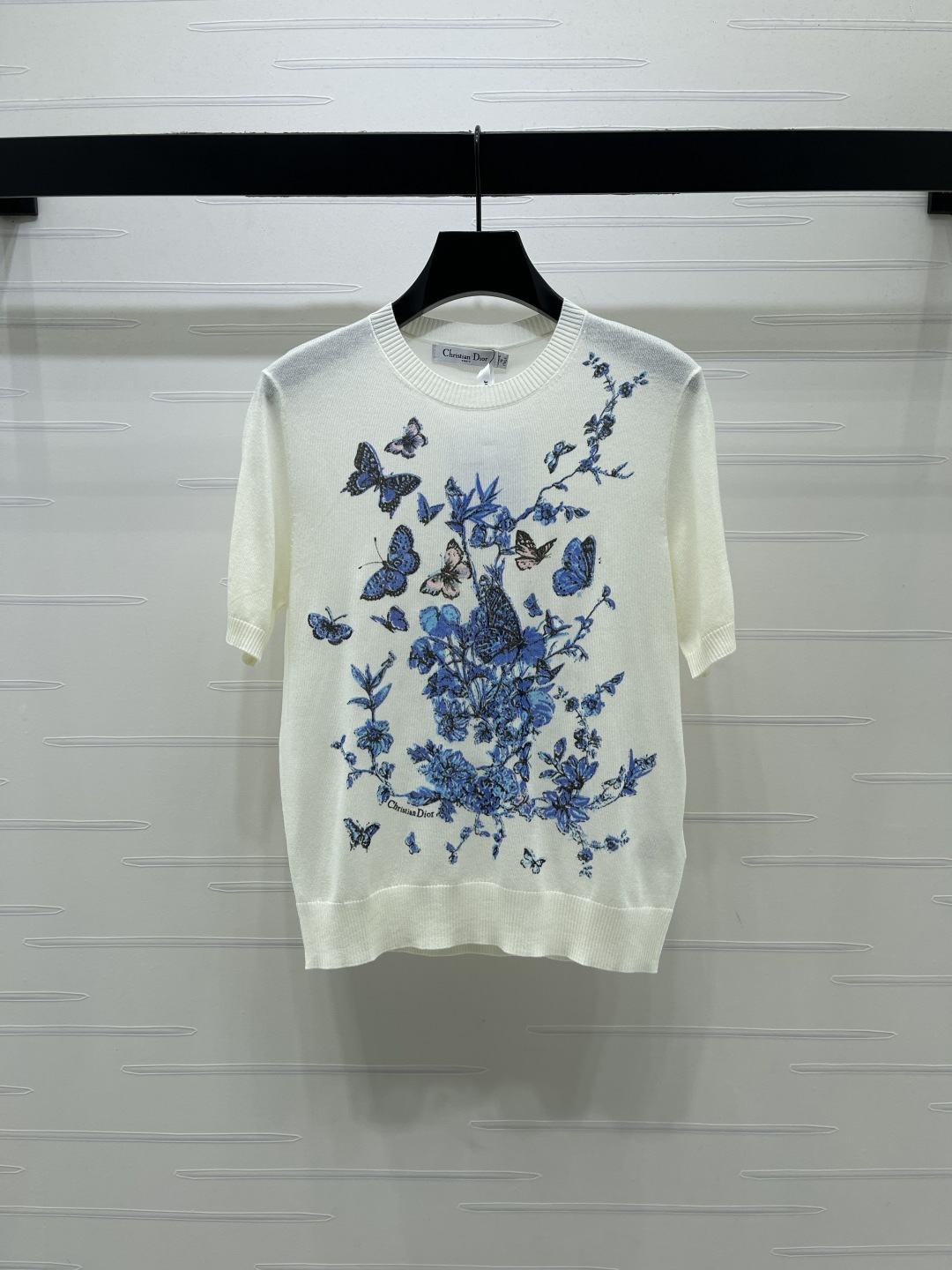 Be the first to review “Dio*r blue butterfly floral print knit short sleeve”