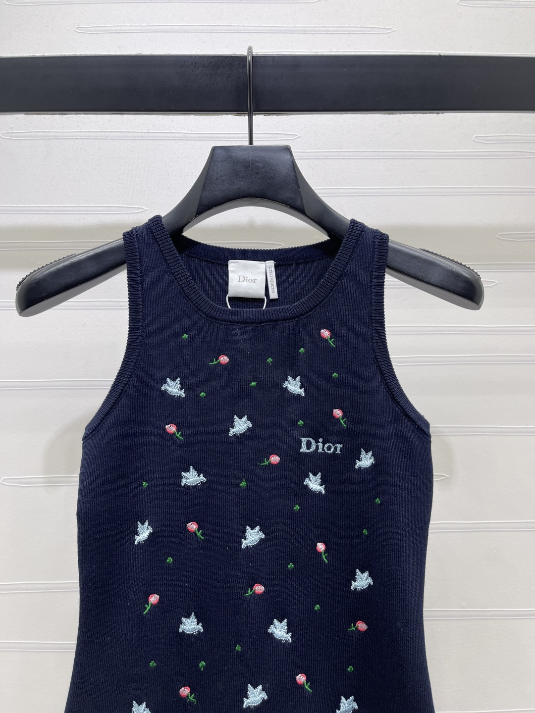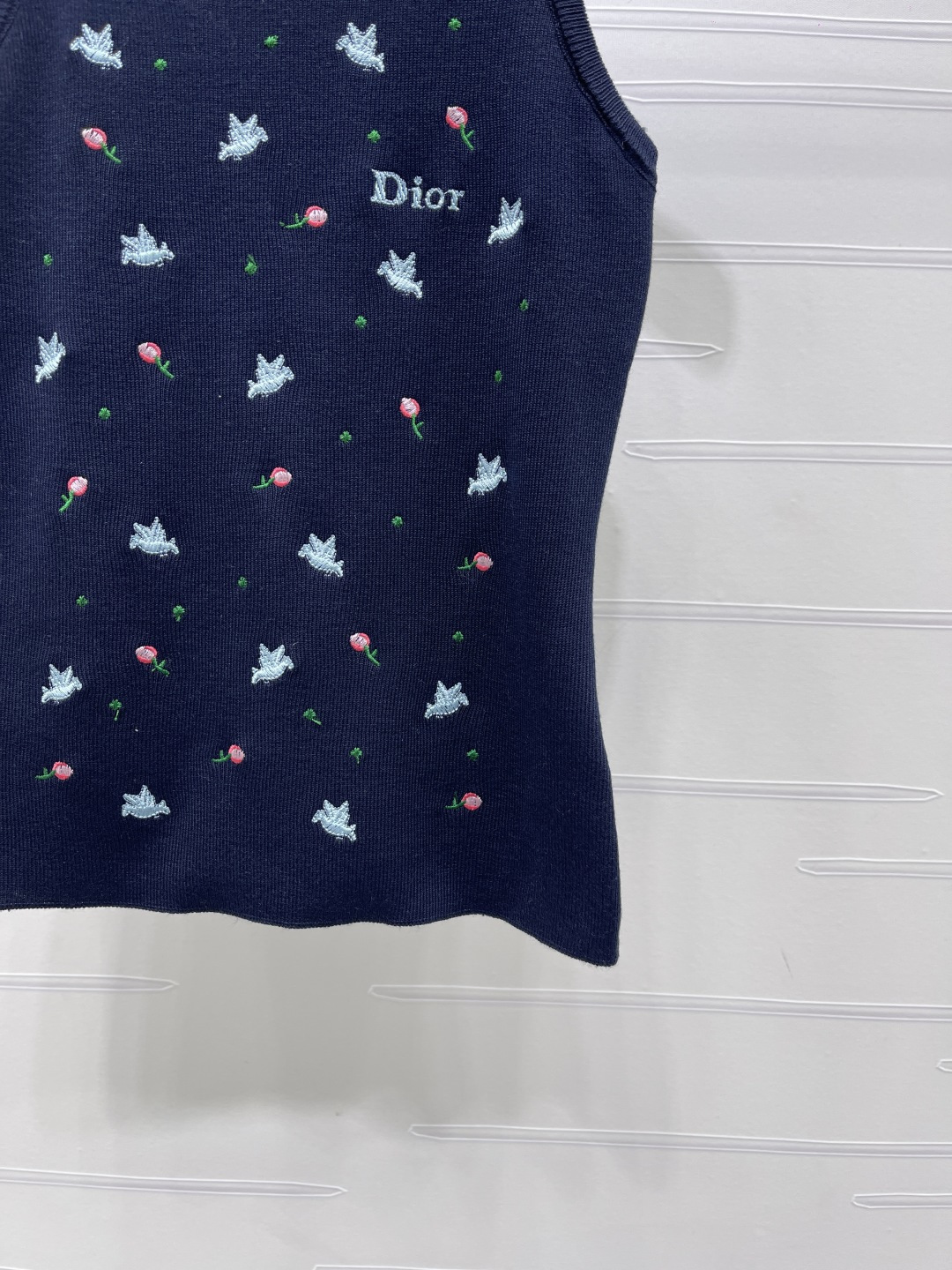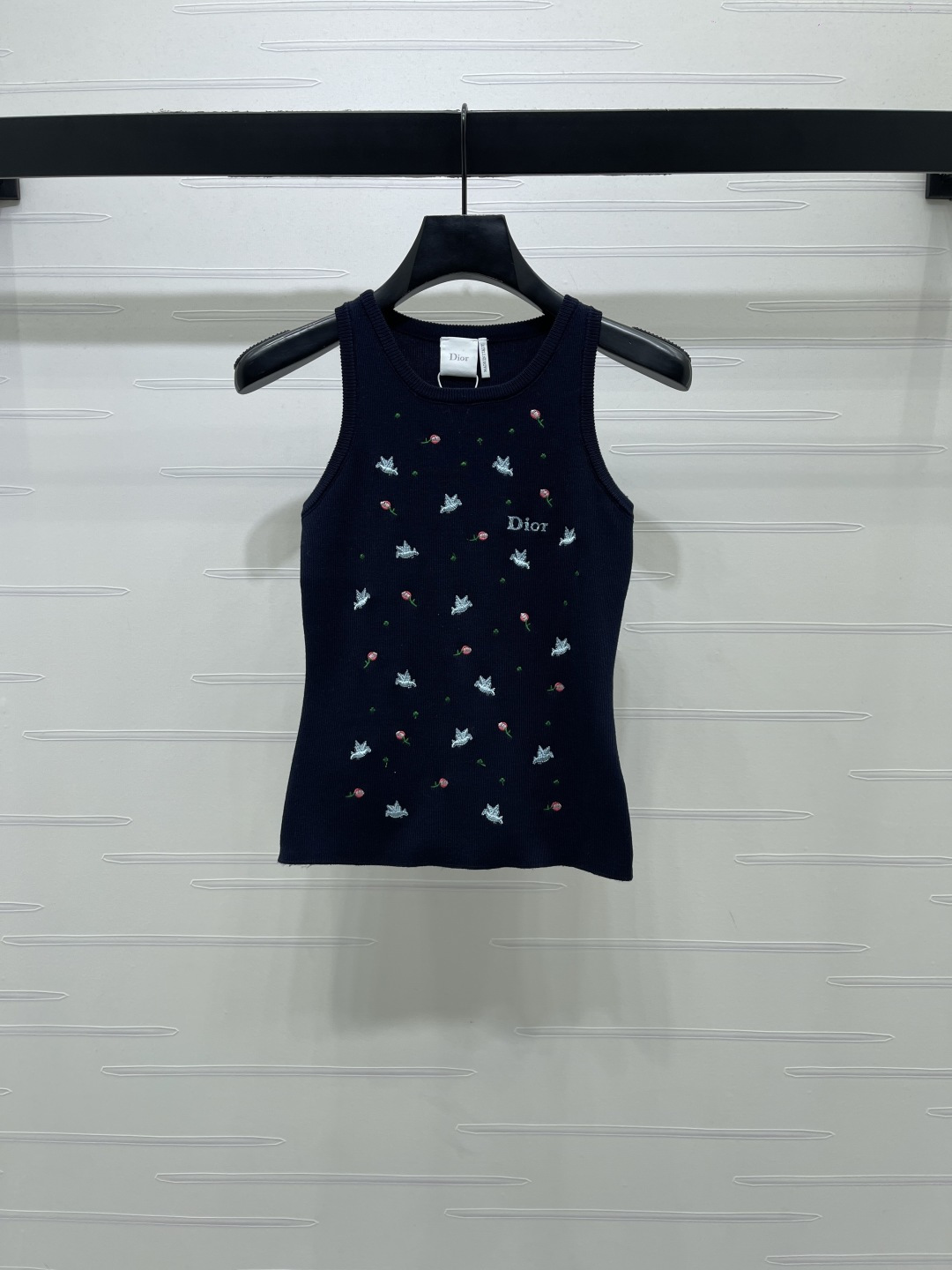 Be the first to review “Dio*r rose and swallow embroidered ribbed tank top navy A706B280C”