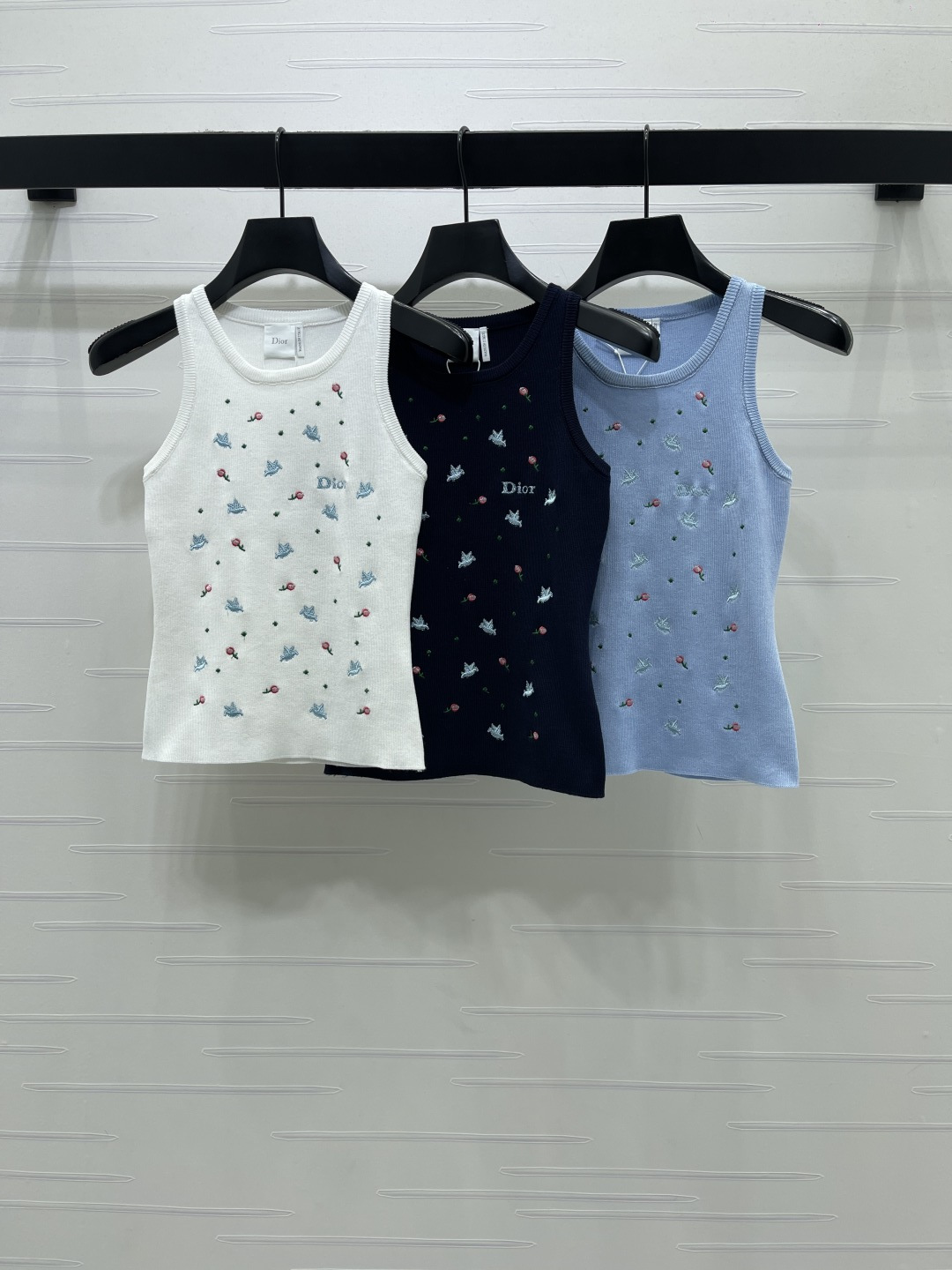 Be the first to review “Dio*r rose and swallow embroidered ribbed tank top white A706B280C”
