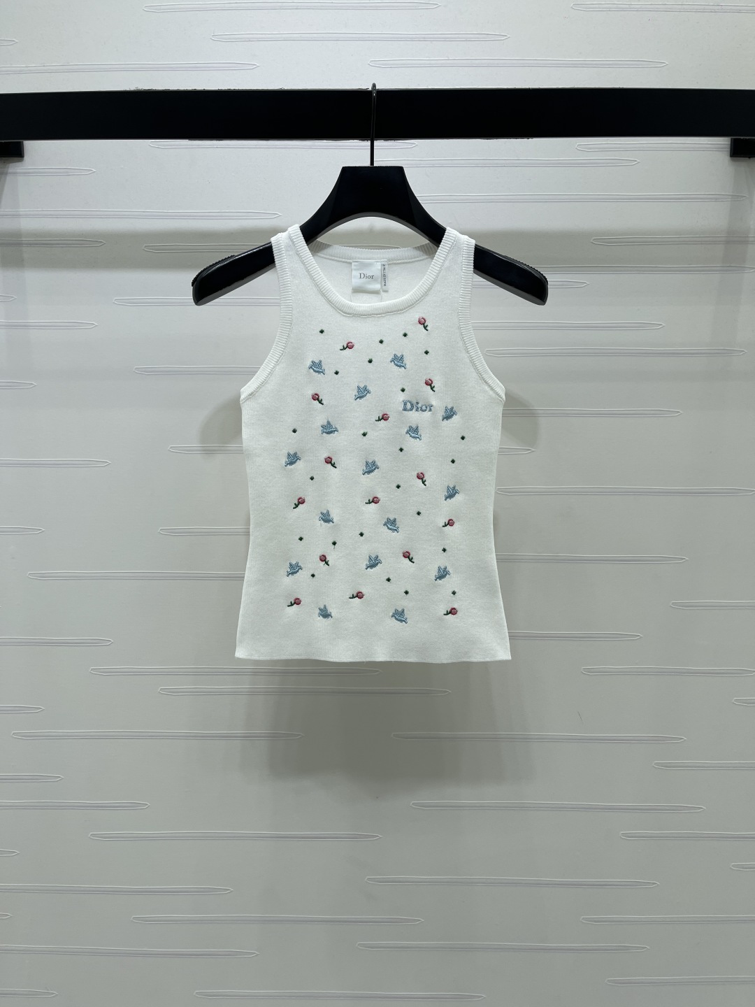 Dio*r rose and swallow embroidered ribbed tank top white A706B280C