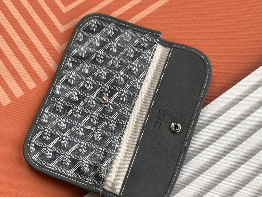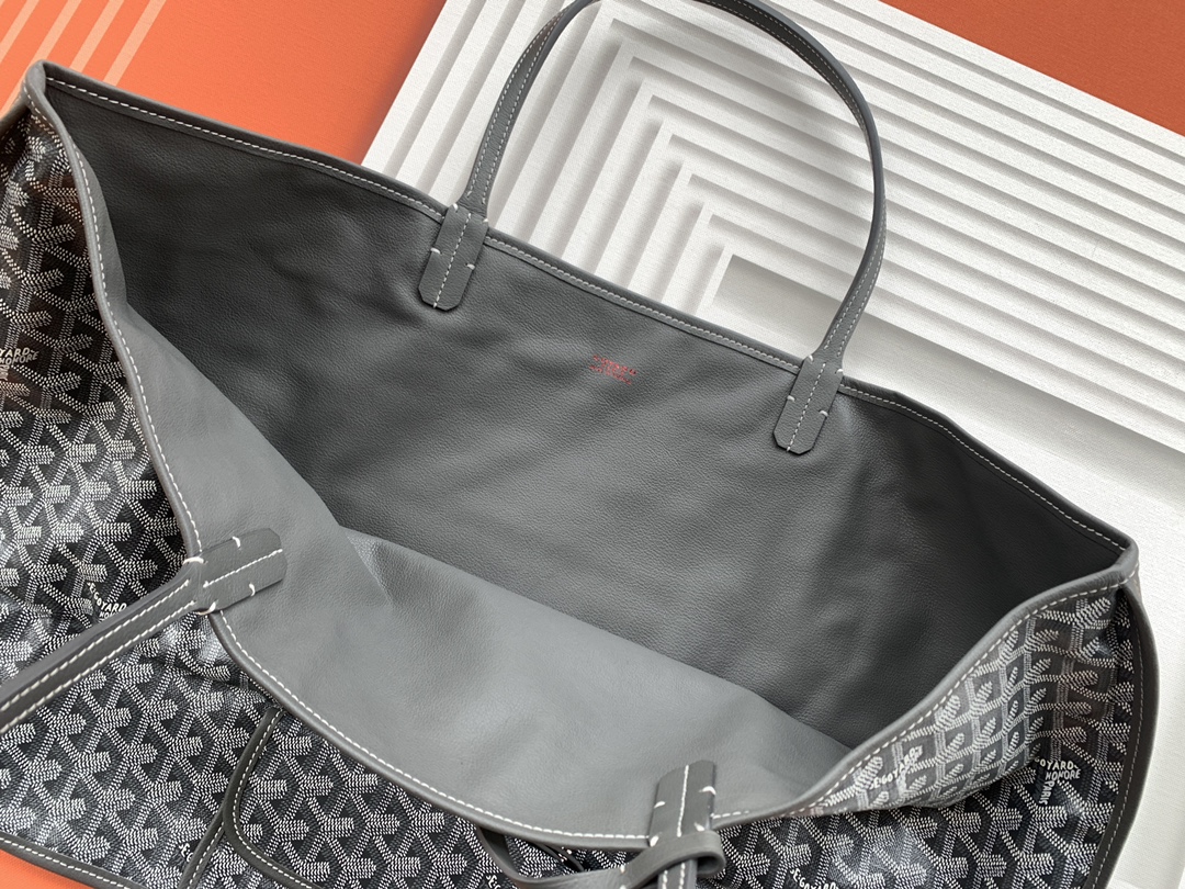 This is a replica GOYARD Anjou GM Bag in grey. The Anjou GM bag is a leather variant lined with goyardine that pays homage to the iconic Saint Louis bag. The ,Size ,