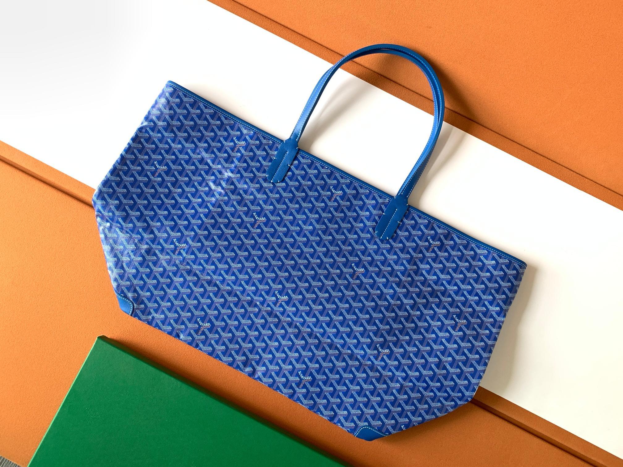 This is a replica GOYARD Artois GM Bag in sky blue. The Artois GM bag uses the aesthetic lines and codes of our Artois PM and MM bags in a travel format, ideal for a weekend or as carry-on luggage. The handles ensure comfort when worn over the shoulder. The zip closure has two lockable zips to secure the contents.,