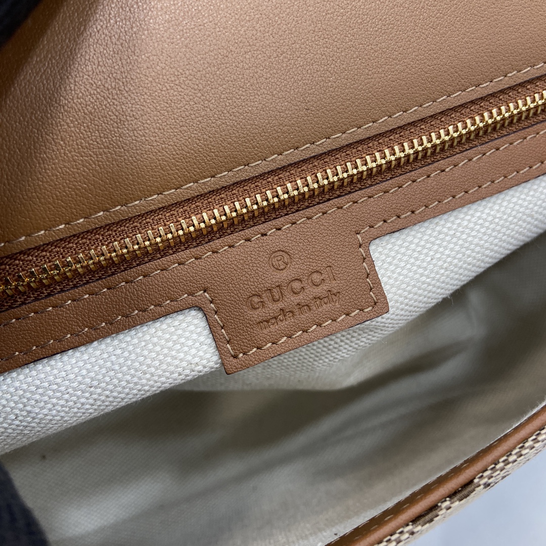 This is a replica GUCCI Blondie medium top handle bag in beige and dark brown canvas. ,