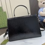 This is a replica GUCCI Dionysus medium bag in black patent leather. Silver-toned hardware. ,