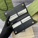 ,Beige and black new GG Monogram coated fabric,Brown leather trim,Web taffeta lining,Embossed Gucci,Additional D-ring for detachable items,Inside: 1 zip pocket, card slots with flat pocket underneath,Snap button closure,Closed: 7.5″W x 3.7″H x 1.2″D ; Open: 7.5″W x 8″H x 0.4″D,,Weight: 0.19lbs approximately