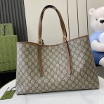 This is a replica GUCCI GG Emblem medium tote bag in Beige and dark brown new GG Monogram coated fabric. ,Size: Medium,