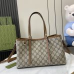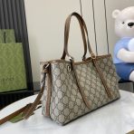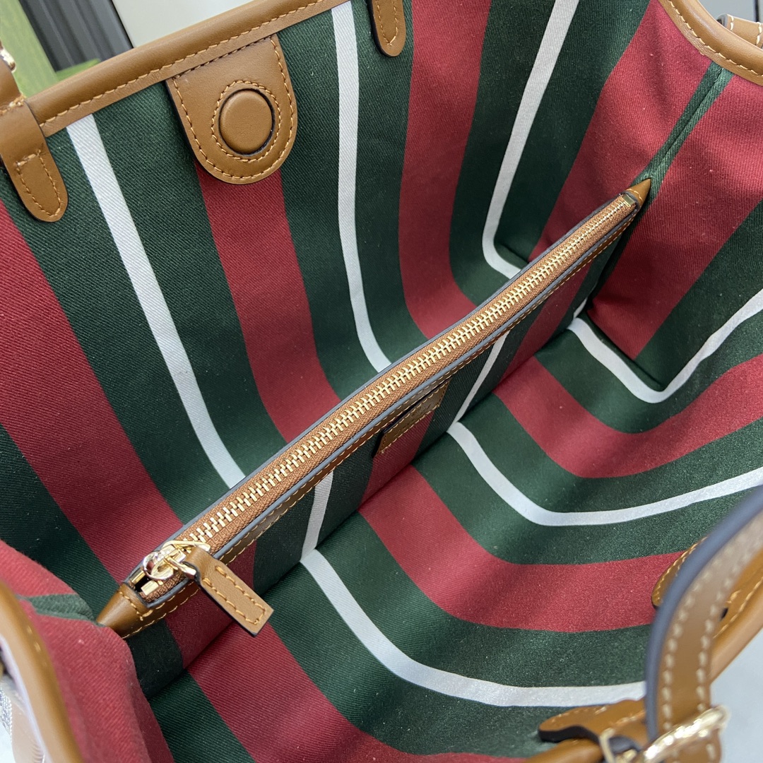 This is a replica GUCCI GG Emblem small tote bag in Beige and dark brown new GG Monogram coated fabric. ,Size: ,