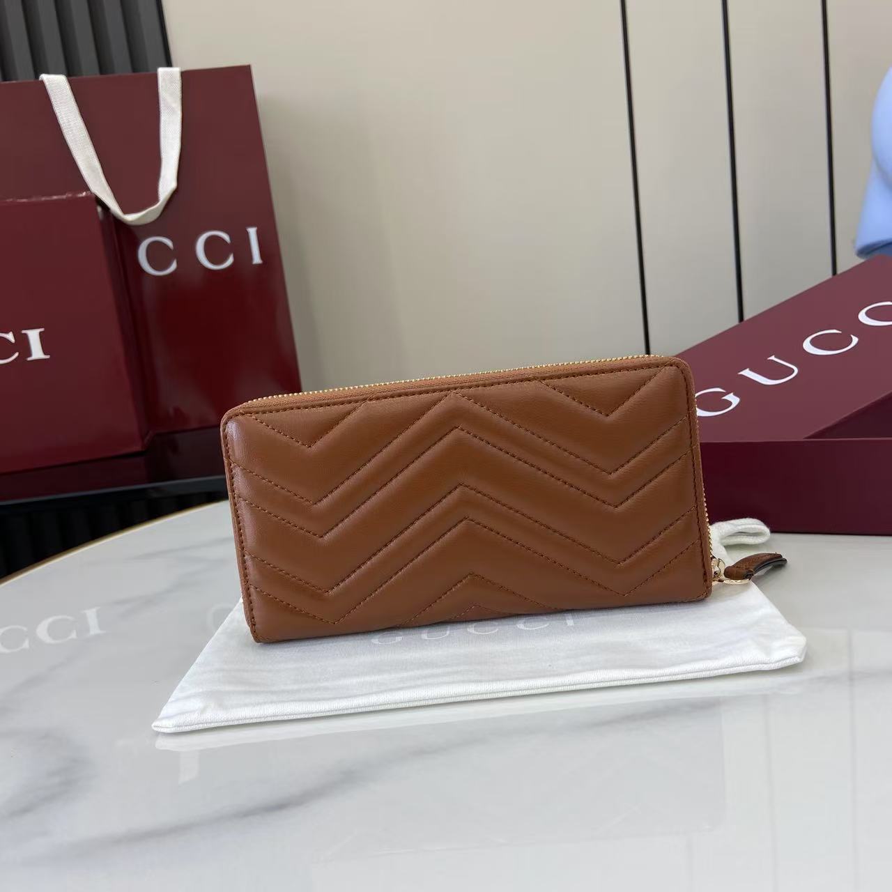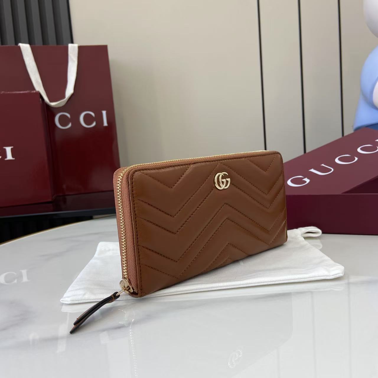 This is a replica GUCCI GG Marmont zip around wallet 837758. ,