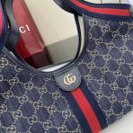 This is a replica Gucci Giglio small tote bag.,Blue and white GG denim,Blue and red Web canvas trim,Light gold-toned hardware,Brown cotton lining,Double G,Detachable pouch,Outside: D-rings,5.9″ handle drop,Detachable and adjustable leather shoulder strap drop: 21.3″ – 24.8″; length: 43.3″ – 50.8″,Hidden magnetic closure,9.8″W x 7.9″H x 5.9″D,Weight: 1.1lbs approximately,Made in Italy,,Fits an iPad, iPhone, Airpods and small items
