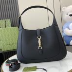 This is a replica GUCCI Jackie 1961 Medium Shoulder Bag in Black leather. Black natural grain leather. ,Size: Medium,