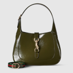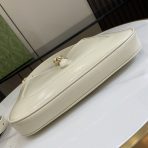This is a replica GUCCI Jackie 1961 Small Shoulder Bag in Ivory patent leather. Crafted from fine leather which highlights its craftsmanship, it comes in crescent shape, and sleek silhouette. Light gold-toned hardware, leather trim, and an additional strap featuring the green and red Web.,Size,