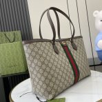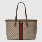 This is a replica GUCCI Ophidia medium tote bag in Beige and ebony GG Supreme. Green and red Web. ,Size: Medium,
