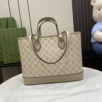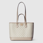 This is a replica GUCCI Ophidia small tote bag in Beige and white GG Supreme. ,Size: Small,