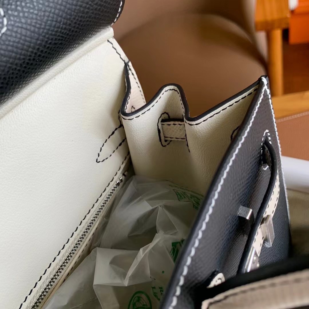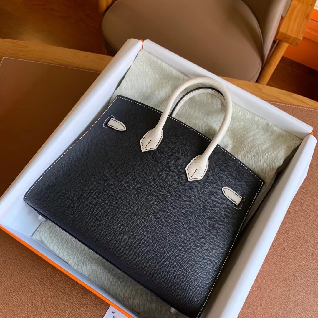 This is a replica ###Hermès Birkin 25 Noir and Craie Epsom Palladium Hardware. ###
