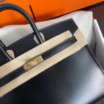 This is a replica ###Hermès Birkin 25 Noir Box Gold Hardware. ###
