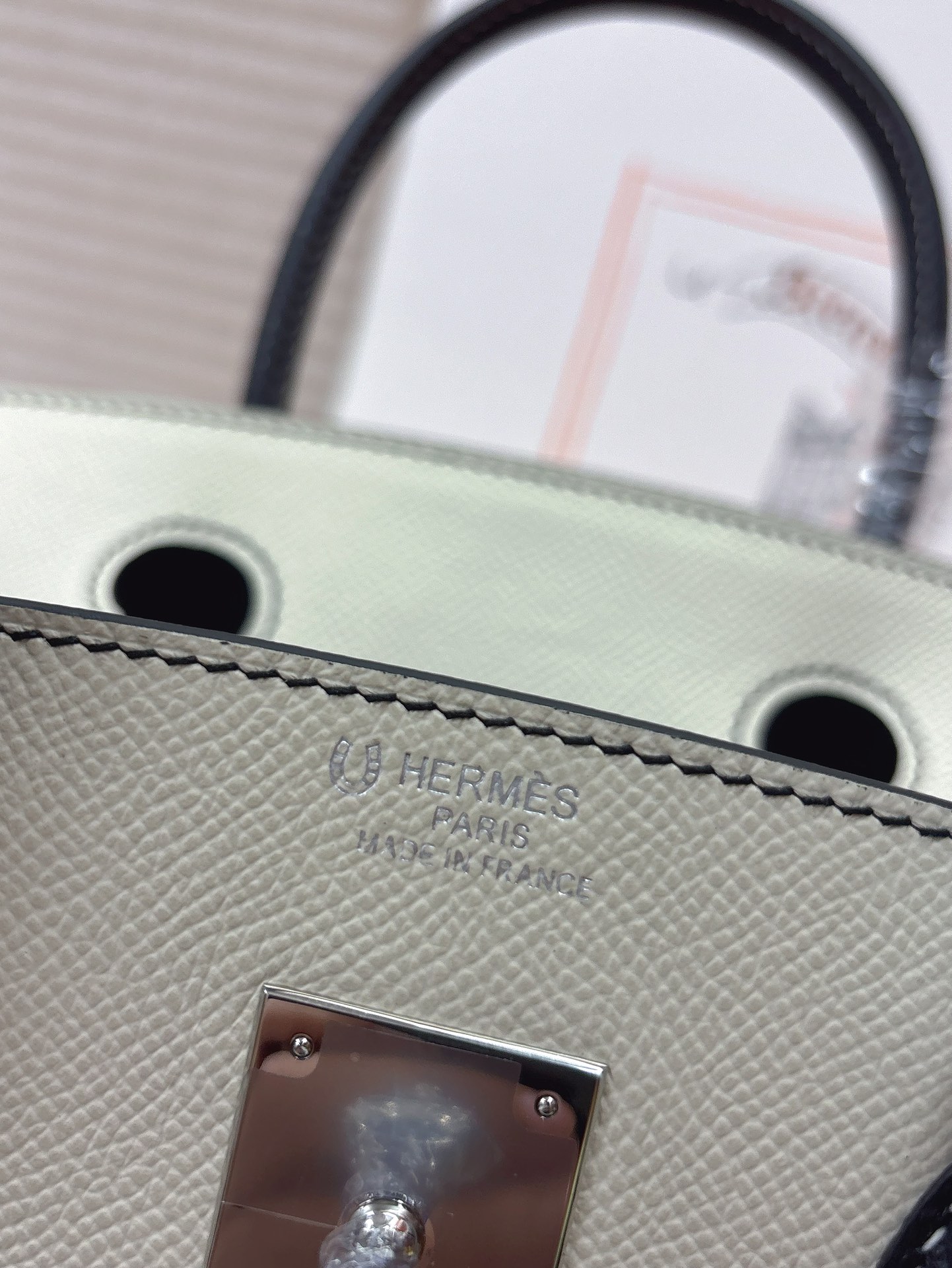 This is a replica ###Hermès Birkin 30 Craie and Black Epsom Palladium Hardware. ###