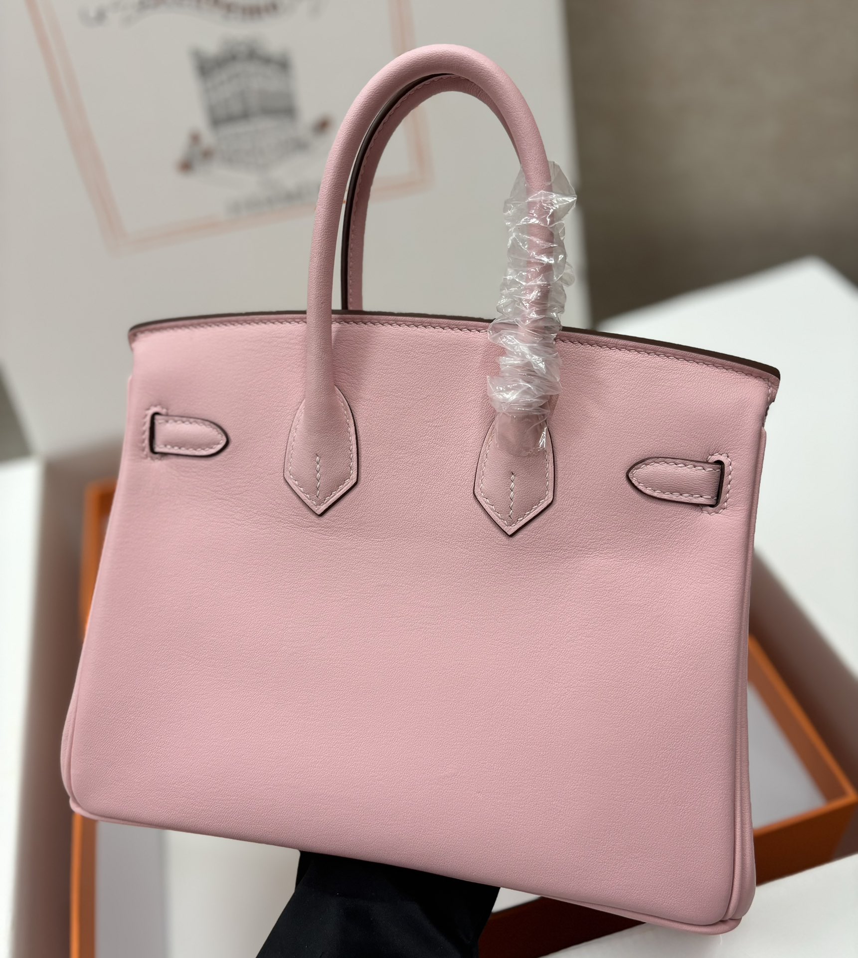 This is a replica ###Hermès Birkin 30 Rose Sakura Swift Palladium Hardware. ###