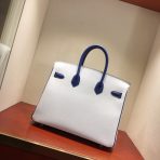 Hermès Birkin 35 Blanc and Blue Htdra Epsom Leather and Gold Hardware