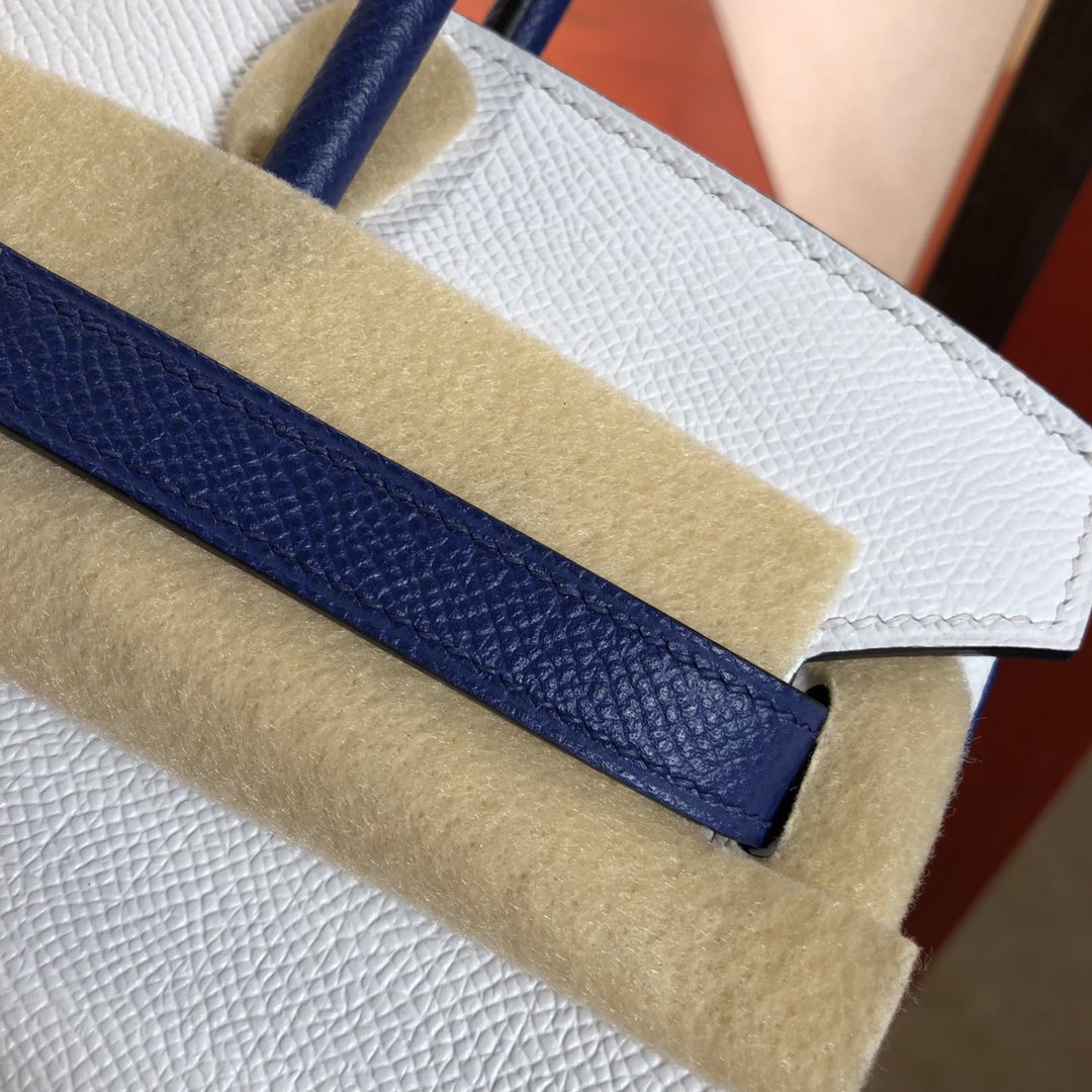 This is a replica ###Hermès Birkin 35 Blanc and Blue Htdra Epsom Leather and Gold Hardware. ###