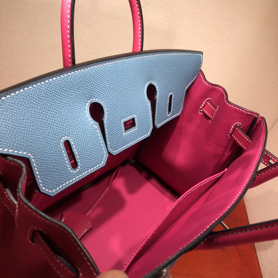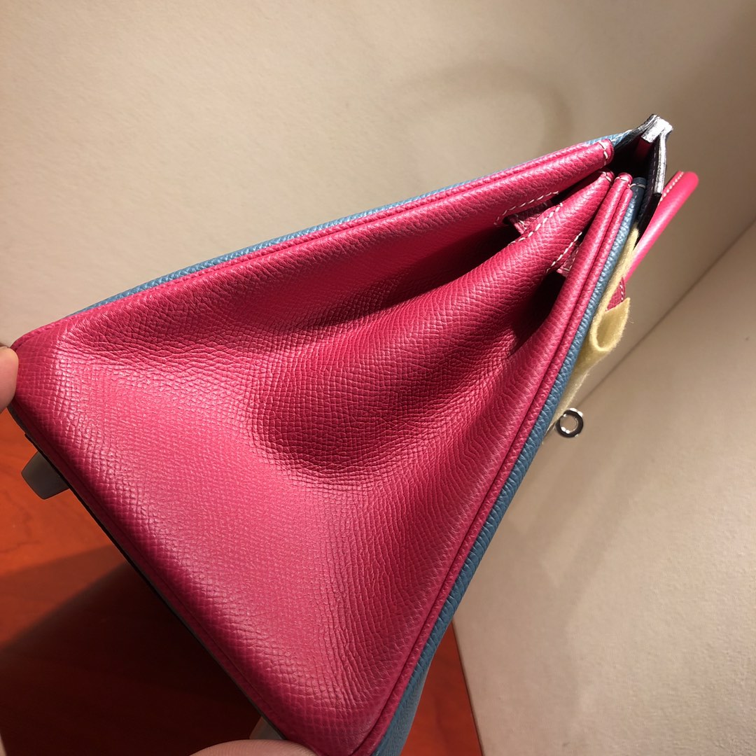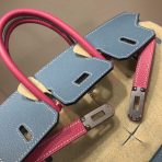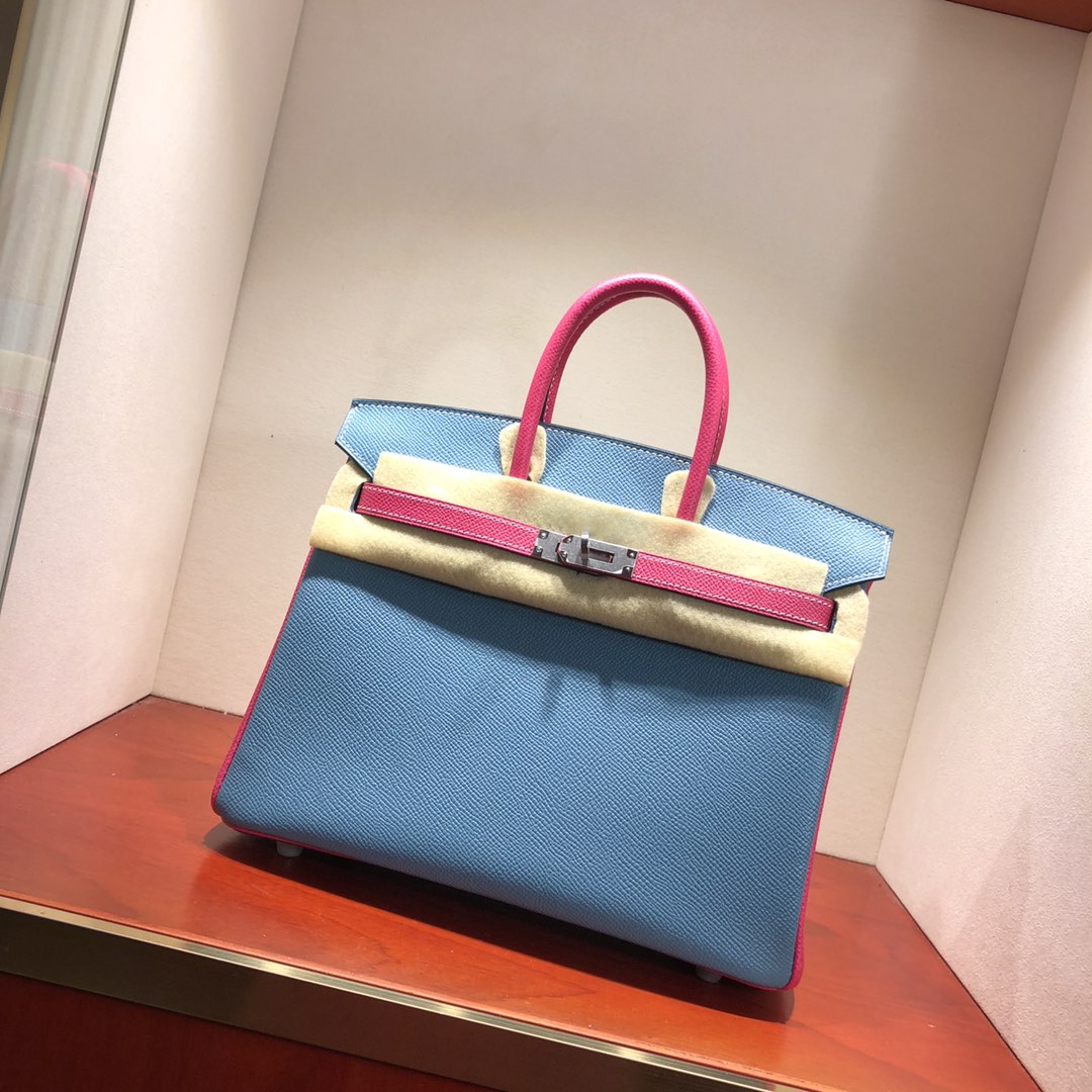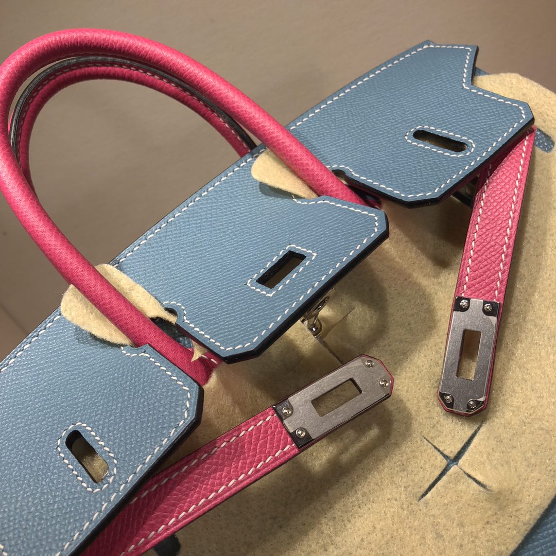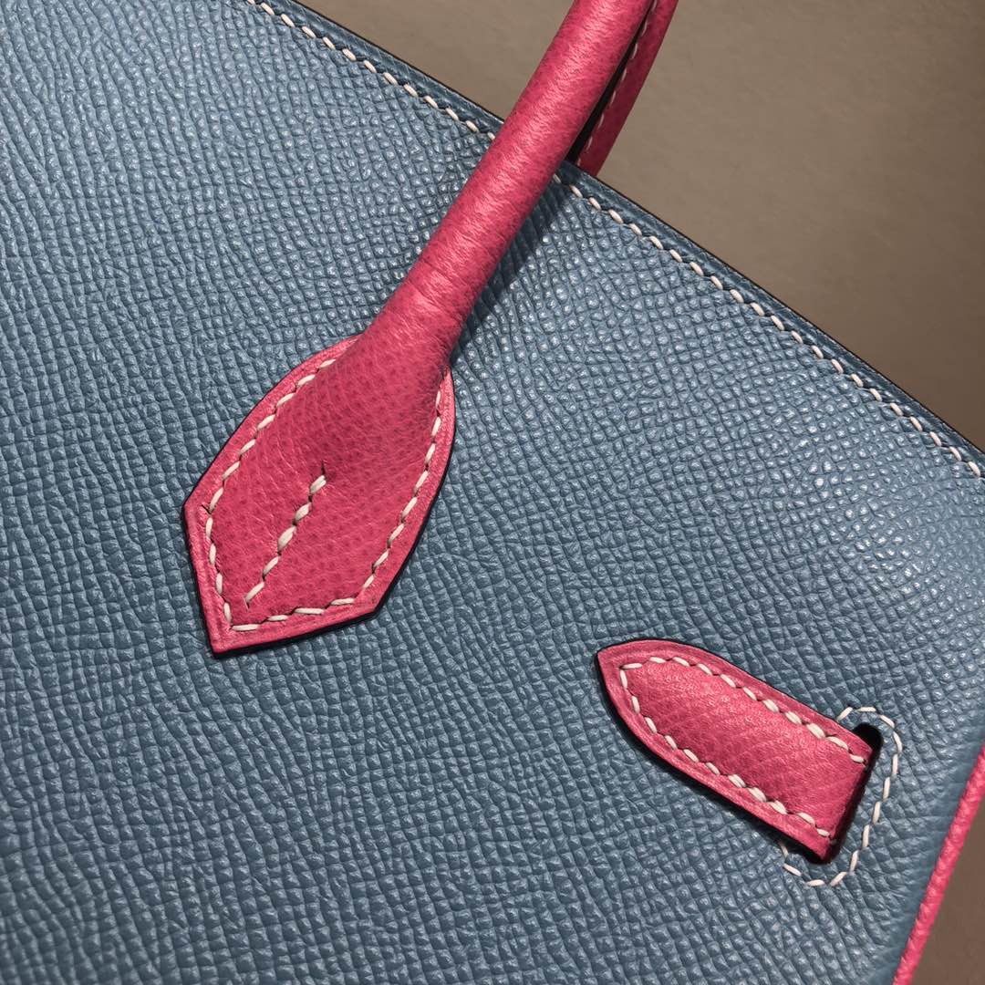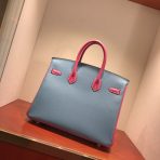 This is a replica ###Hermès Birkin 35 Blue Jean and Rose Tyrien Epsom Leather and Palladium Hardware. ###