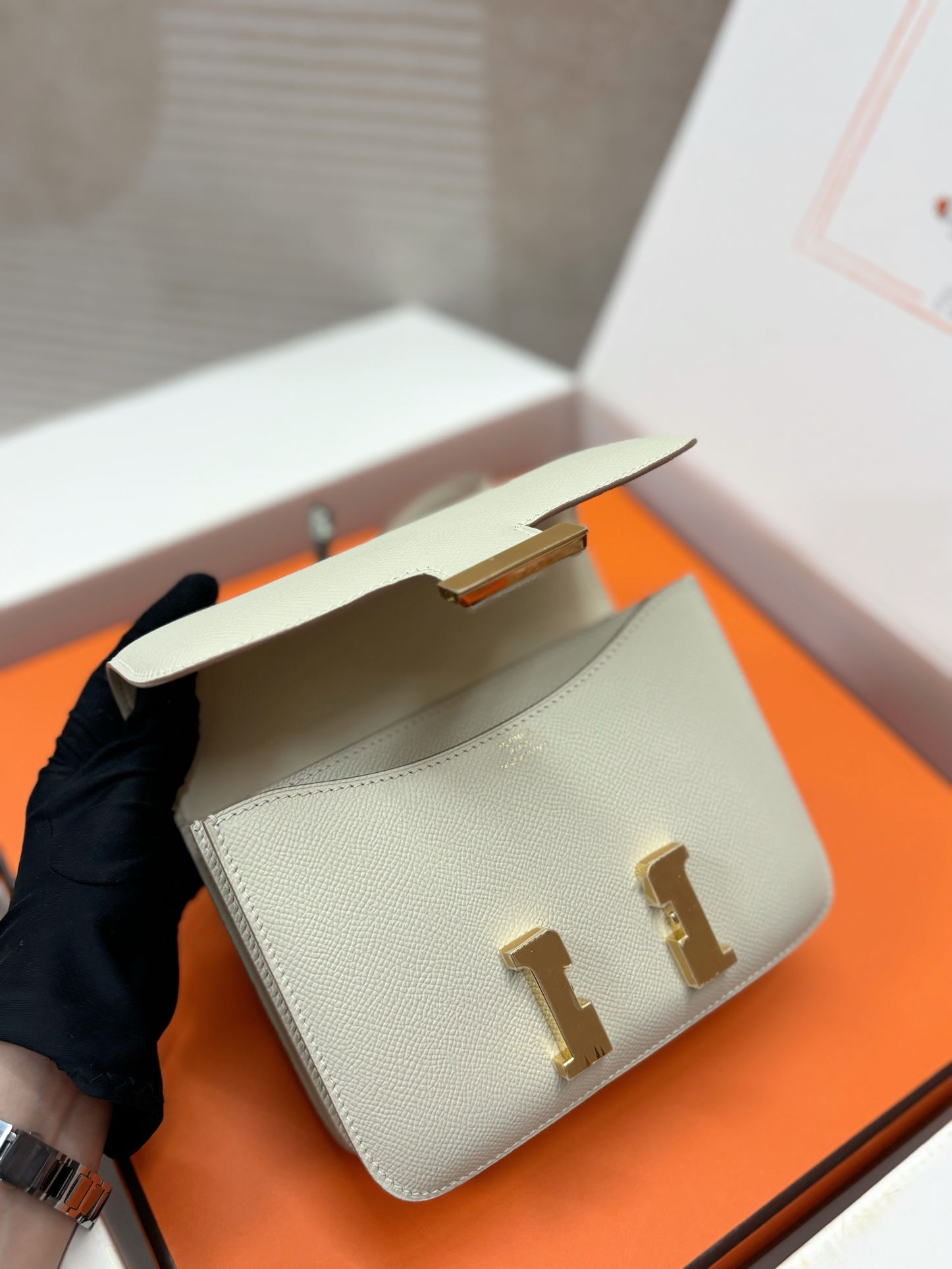 This is a replica ###Hermès Constance 18 Craie Epsom Gold Hardware. ###