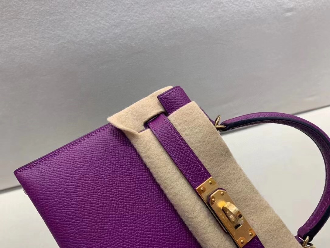 This is a replica ###Hermès Kelly Sellier 20 Anemone Epsom Leather Gold Hardware. ###