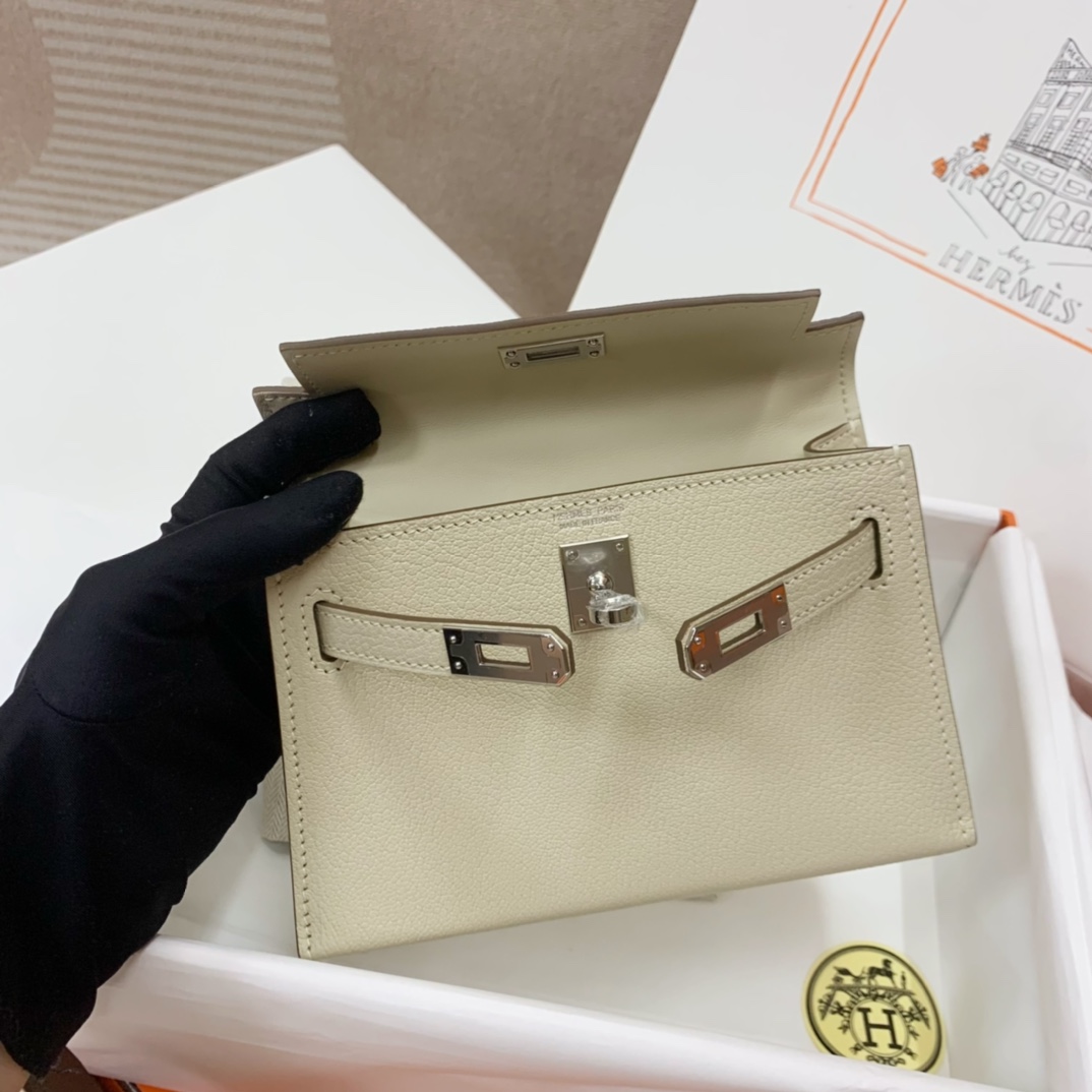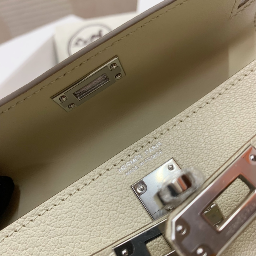 This is a replica ###Hermès Kelly Sellier 20 Mushroom Goat Leather Palladium Hardware. ###