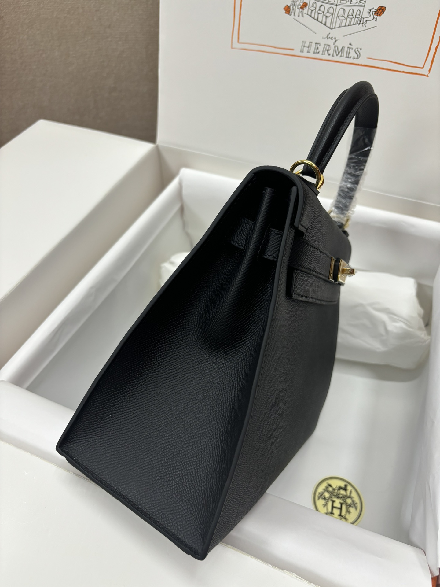 This is a replica ###Hermès Kelly Sellier 20 Noir Epsom Leather Gold Hardware. ###