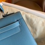 This is a replica ###Hermès Kelly Sellier 25 Blue Jean Epsom Palladium Hardware. ###