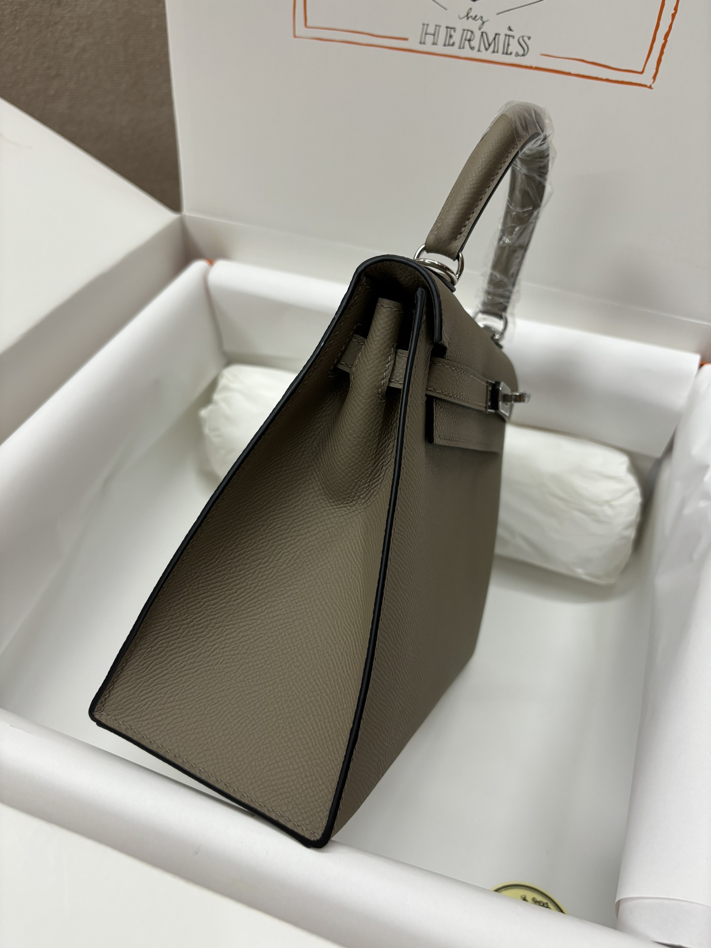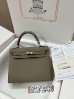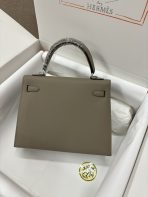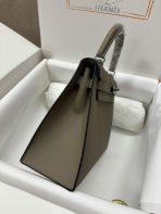 This is a replica ###Hermès Kelly Sellier 25 Etoupe Epsom Palladium Hardware. ###