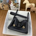 This is a replica ###Hermès Lindy 26 Noir Clemence Palladium Hardware. ###