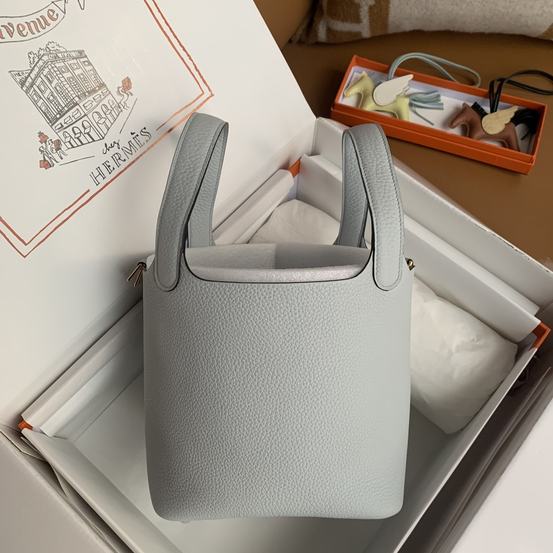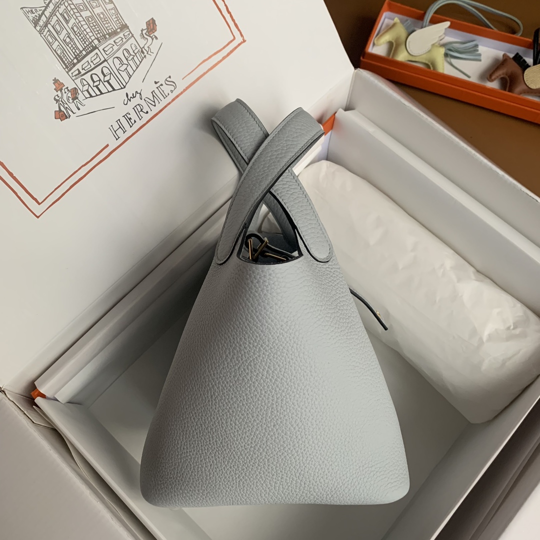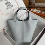 This is a replica ###Hermès Picotin Lock 18 Blue Pale Clemence Gold Hardware. ###