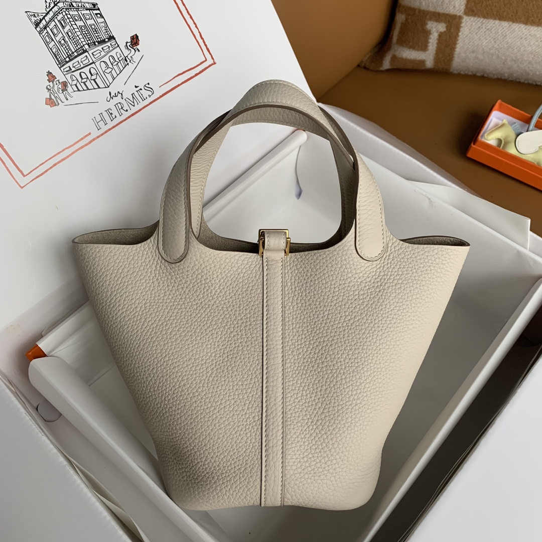 This is a replica ###Hermès Picotin Lock 18 Craie Clemence Gold Hardware. ###