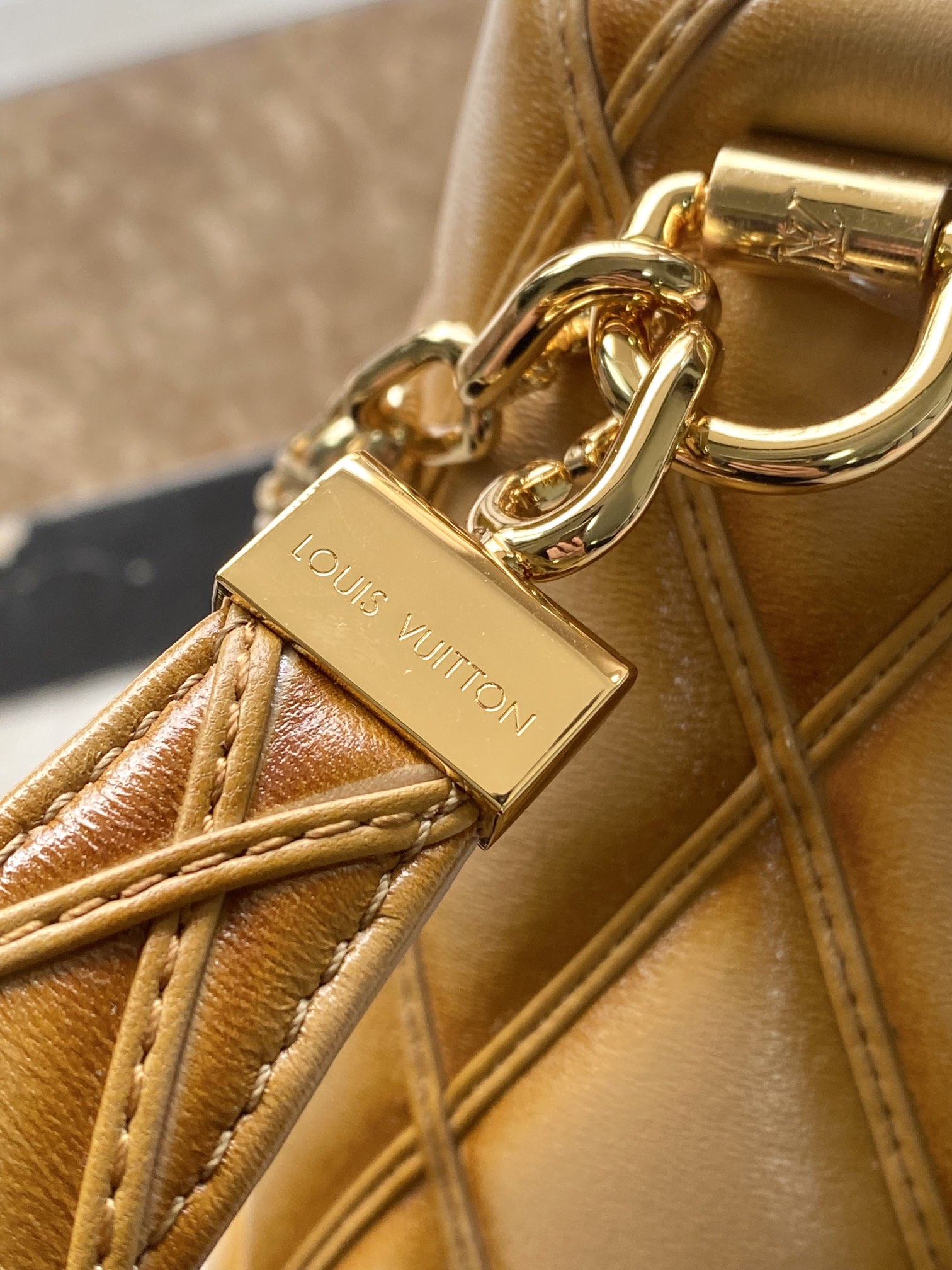 This is a replica LOUIS VUITTON M12332 GO-14 PM. ,7.9 x 5.5 x 3.5 inches ,Sand,Lambskin leather,Lambskin-leather trim,Cowhide-leather lining,Gold-toned hardware,Twist lock,Double inside back flat pocket with mirror,Fits: 6.7-inches smartphone, Rosalie Coin Purse, earphones, lipstick, tissues, keys, sunglasses,Chain:Sliding, removable,Handle:Single, removable