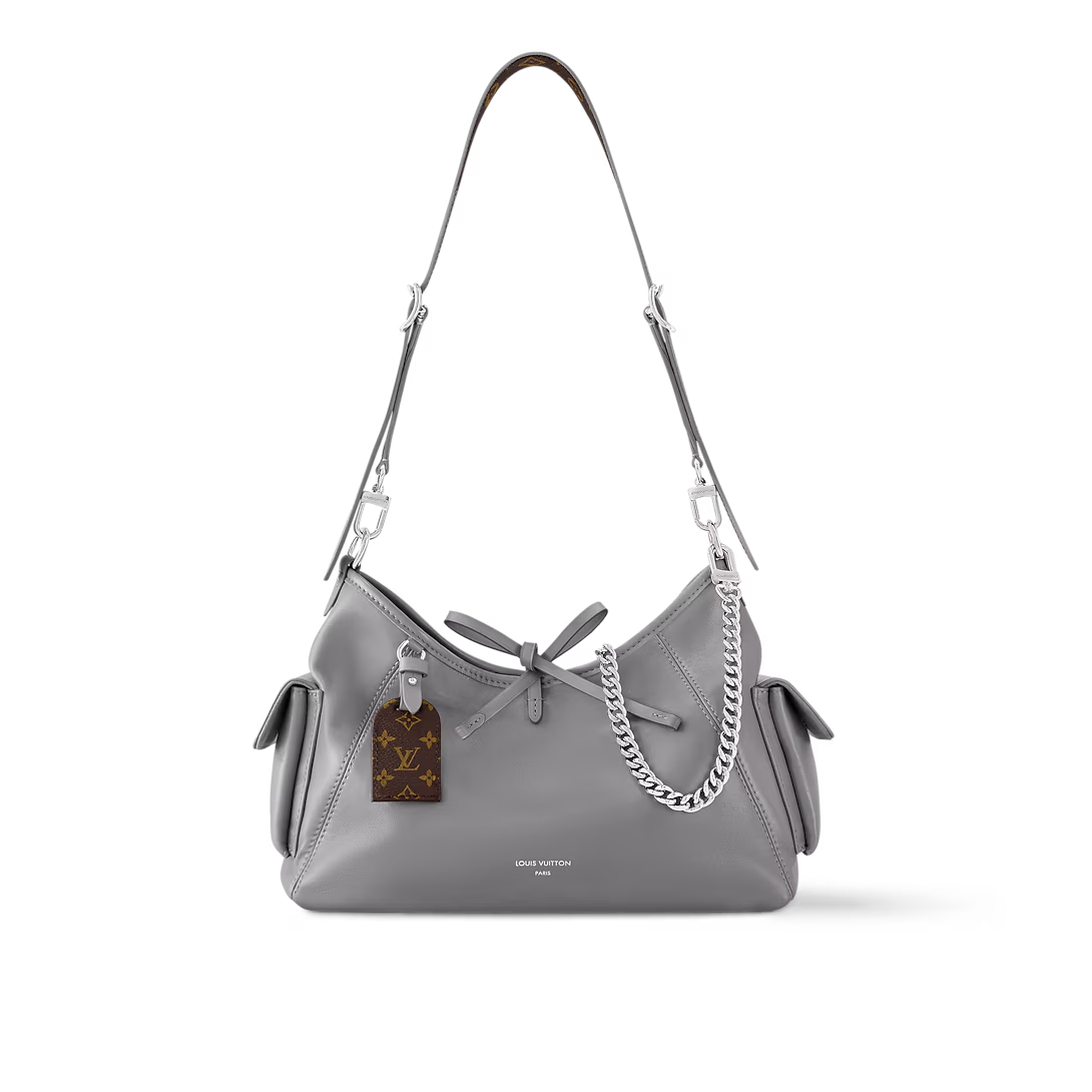 This is a replica LOUIS VUITTON M12579 CarryAll Cargo Vibe PM. ,33.5 x 23 x 15 cm ,Trianon Grey,Lambskin leather,Cowhide leather trim,Microfibre lining,Silver-colour hardware,Leather lace closure,Zipped inside pocket,Flat inside pocket,Leather lace closure,Strap: Removable, adjustable,Strap Drop: 32.0 cm,Strap Drop Max: 48.0 cm,Chain: Removable,Chain Drop: 24.0 cm