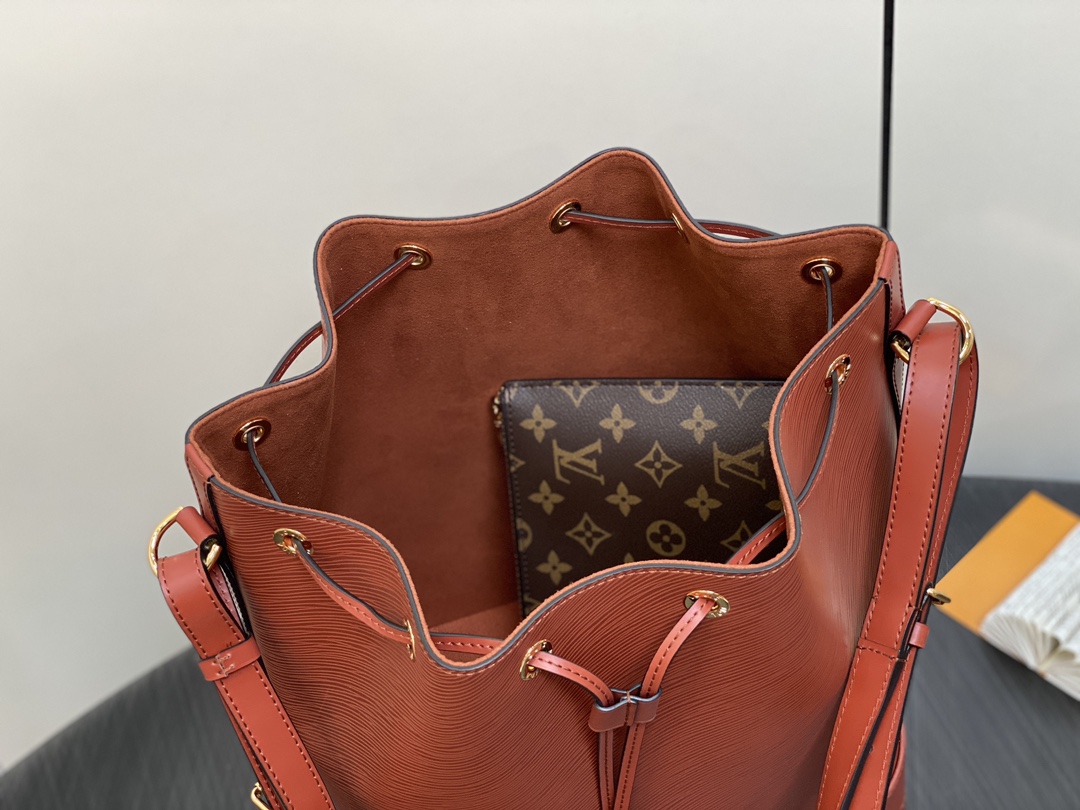 This is a replica LOUIS VUITTON M12604 Noé MM. ,10.6 x 13 x 7.9 inches ,Kenyan Fauve,Epi grained leather,Cowhide-leather trim,Microfiber lining,Gold-toned hardware,1 removable pouch,Drawstring closure,Fits: 13-inch laptop, Zippy Wallet, earphones and keys,Strap:Removable, adjustable,Strap drop:10.8 inches,Strap drop max:12.4 inches
