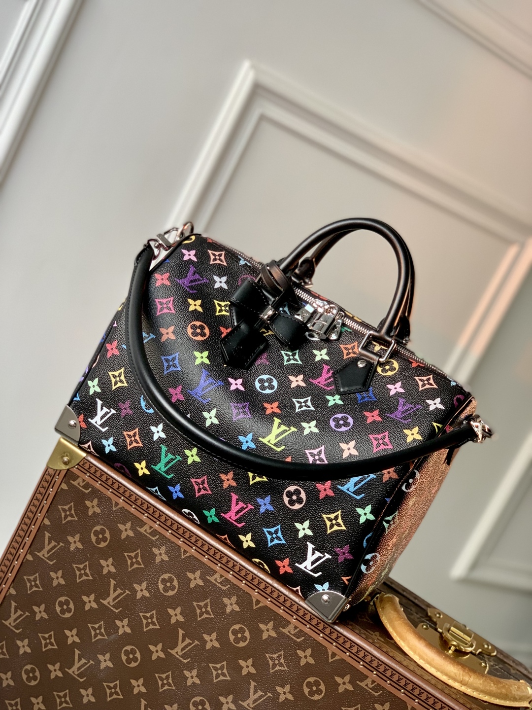 This is a replica LOUIS VUITTON M13257 ,LV x TM Speedy Soft 30,11.8 x 8.3 x 6.7 inches,(Length x Height x Width),Multicolored,Monogram coated canvas,Calf-leather trim,Textile lining,Silver-toned hardware,Double zipper closure,Inside pocket,Keybell,Padlock,Fits: smartphone, keys, earphones, Zippy wallet,Strap:Removable, not adjustable,Strap drop:9.4 inches,Handle:Double