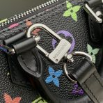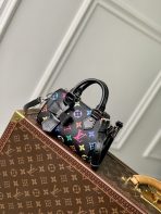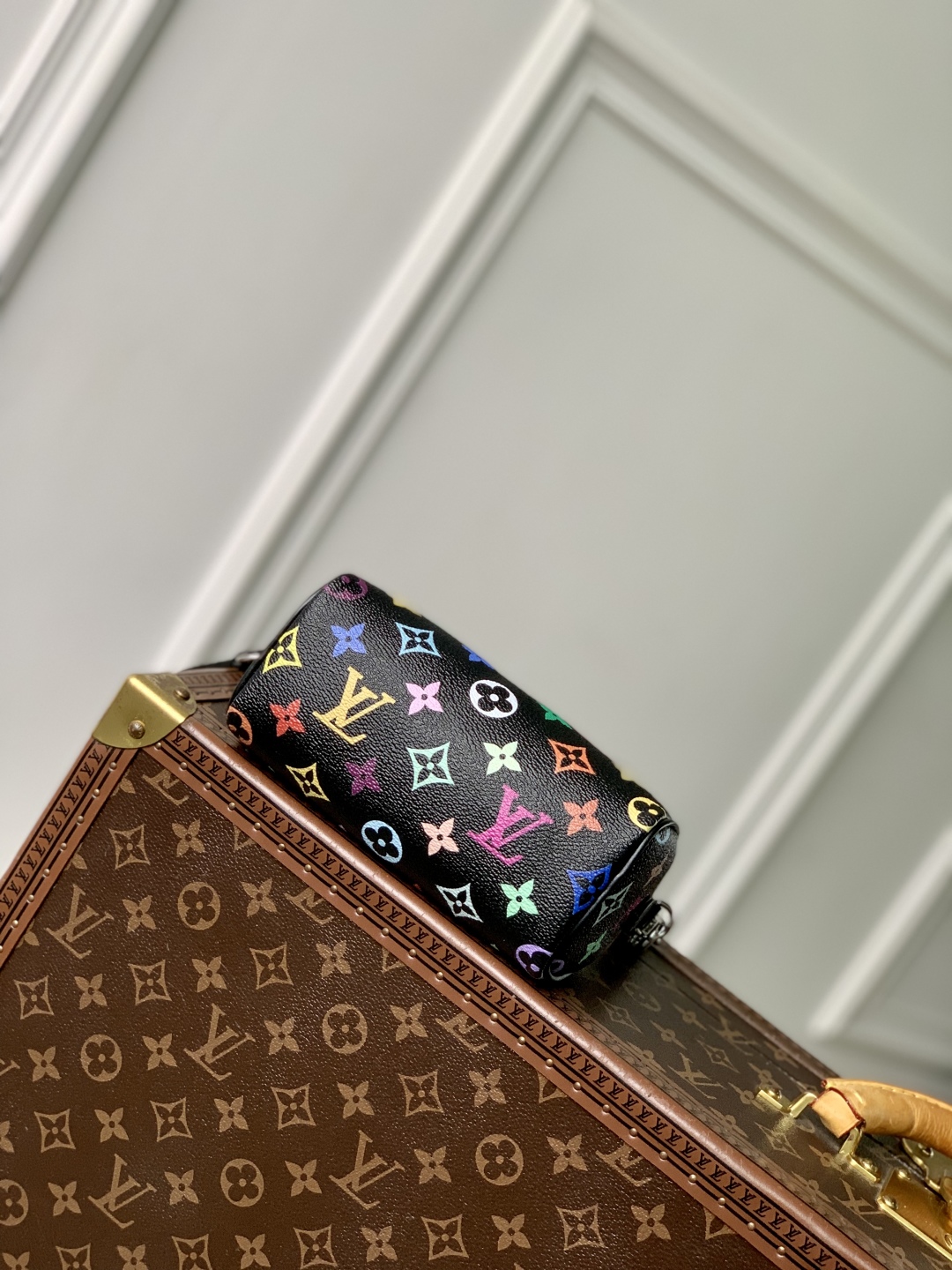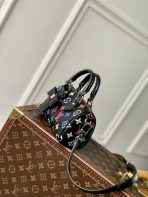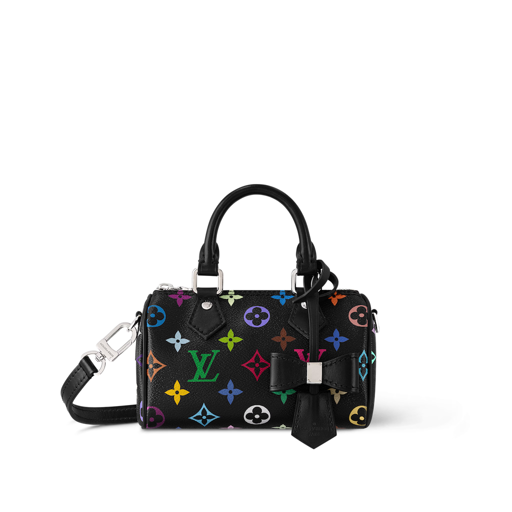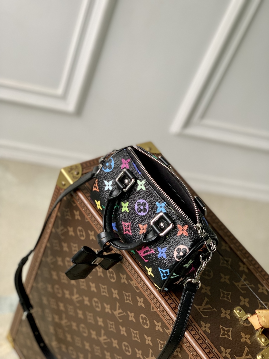 This is a replica LOUIS VUITTON M13406 ,LV x TM Nano Speedy,6.3 x 3.9 x 3 inches,(Length x Height x Width),Multicolored,Monogram coated canvas,Cowhide-leather trim,Microfiber textile lining,Silver-toned hardware,Zipper closure,Removable keybell,Strap:Removable, adjustable,Strap drop:17.9 inches,Strap drop max:21.3 inches,Handle:Double