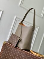 This is a replica LOUIS VUITTON M15205 Hobo PM Bag. ,24 x 28 x 16 cm ,Smoke,Calf leather,Calf leather trim,Calf leather lining,Aged gold-colour hardware,1 hook closure,1 removable Monogram zipped pouch,Fits small tablet, smartphone, earphones, Zippy Wallet, keys, lipstick,Strap: Non-removable, adjustable,Strap Drop: 27.0 cm,Strap Drop Max: 45.5 cm