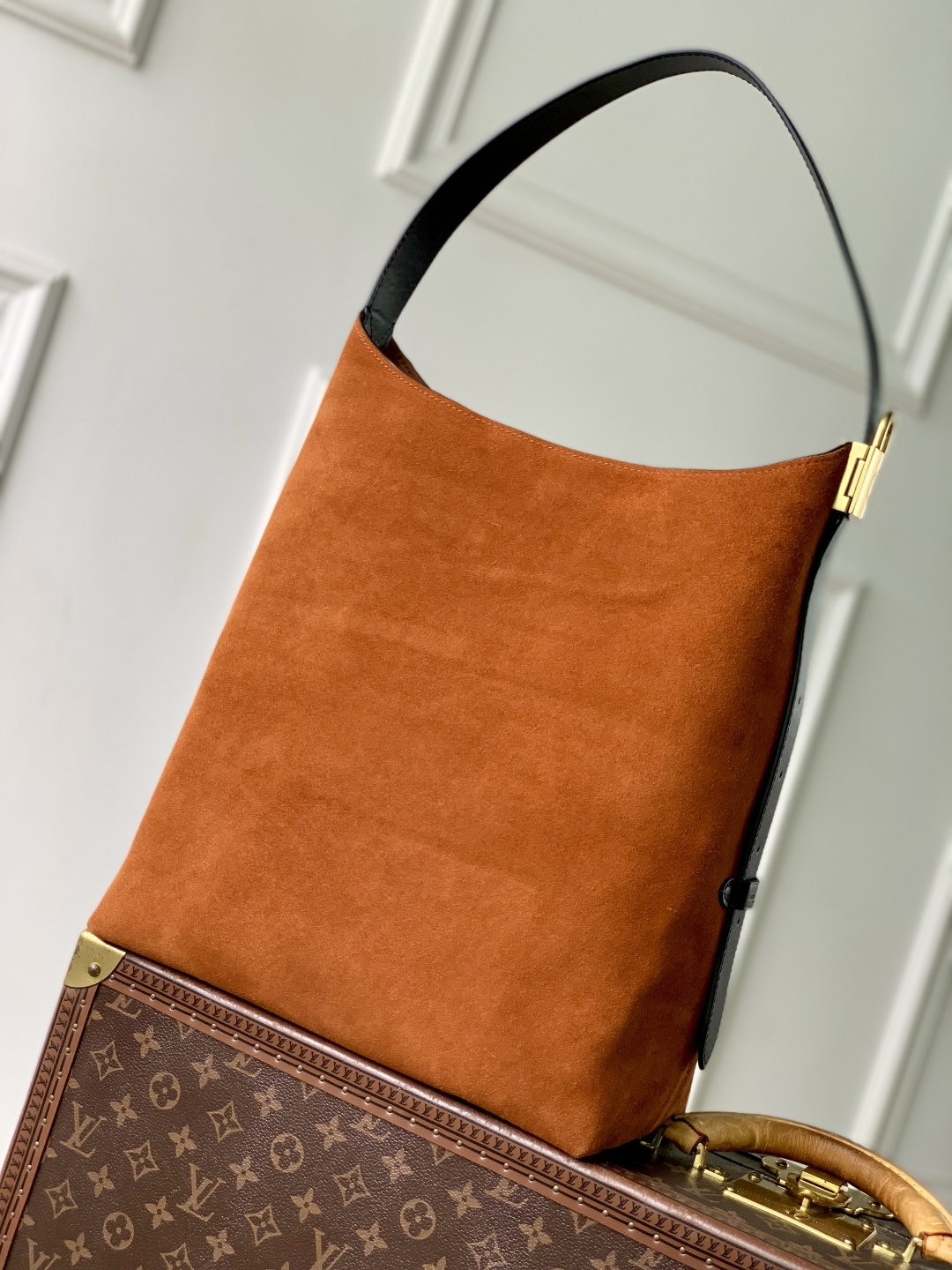 This is a replica LOUIS VUITTON M25516 Hobo MM Bag. ,31 x 35 x 18 cm ,Tan Brown,Suede calf leather,Calf leather trim,Calf leather lining,Aged gold-colour hardware,1 hook closure,1 flat inside pocket,1 removable Monogram zipped pouch,Fits small tablet, smartphone, Zippy Wallet, book, keys, lipstick,Strap: Non-removable, adjustable,Strap Drop: 16.0 cm,Strap Drop Max: 39.0 cm